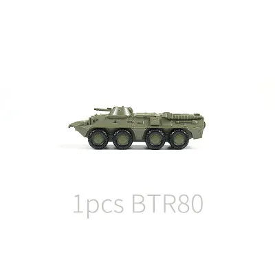 - Includes 28 plastic pieces, featuring a BTR-80 armored vehicle and an M35 military truck, both in detailed military green finish, ready to assemble without glue for ease and convenience.