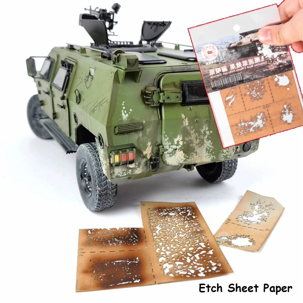 Enhance your military modeling projects with this versatile stencil template kit, featuring 12 different corrosion stain, leakage spray, and diorama detailing stencils made of durable cardboard. Suitable for spray techniques, it includes a peelable etch sheet for precise application and is recommended for ages 14 and above. Available in multiple colors such as yellow, cyan, beige, and charcoal, this kit enables you to create realistic weathering effects, rust, leaks, and environmental details, adding authenticity and depth to your military vehicle models. Fire-safe and chemical-free, it’s an essential tool for serious hobbyists seeking professional-grade realism in their dioramas.