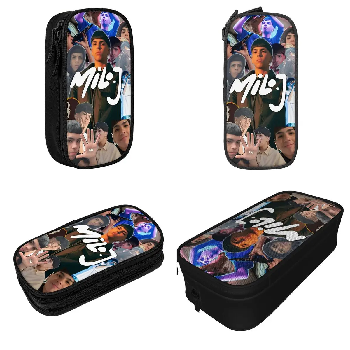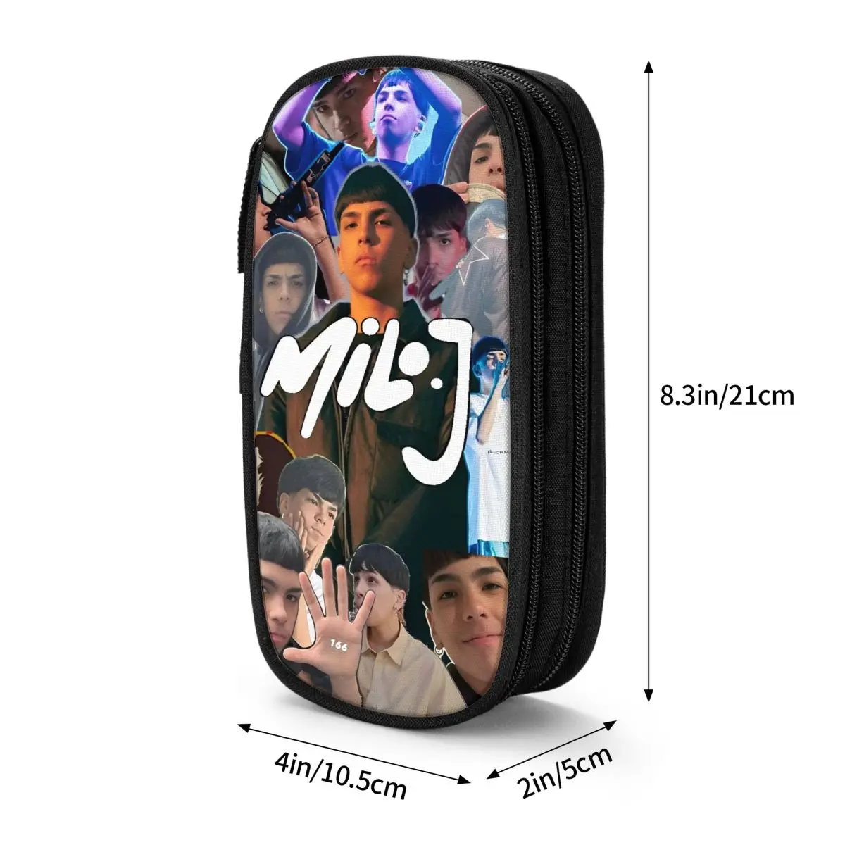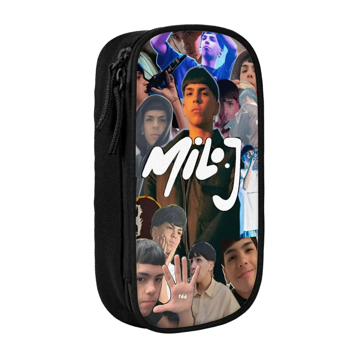 The Milo J Pencil Case is the perfect blend of style and practicality for students and professionals alike. Its sleek black leather exterior complements a vibrant, dynamic graphic design featuring a collage of the artist Milo J in various expressive poses. The bold white font displaying “Milo J” makes this case stand out. With a spacious interior featuring multiple compartments, it easily organizes colored pencils, pens, and other stationery items. The durable leather finish ensures it withstands daily wear while giving it a refined touch. Whether at school or the office, this pencil case adds a unique flair to your collection.