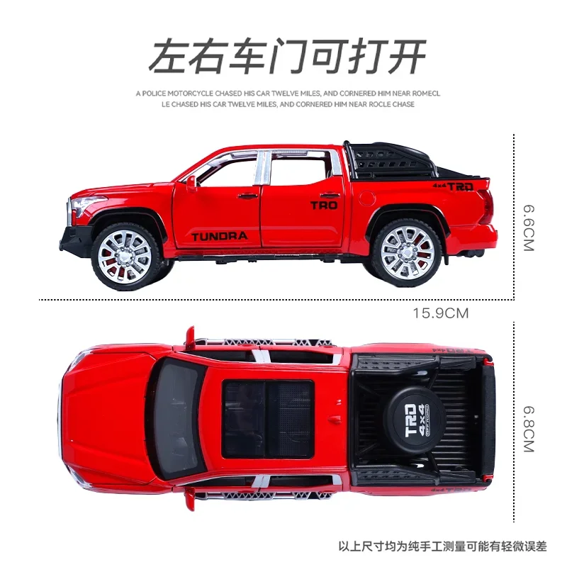 Imagine adding this remarkable Tundra pickup model to your collection. It’s not just a great piece; it’s an invitation to adventure and exploration. Stand out among fellow collectors with this stunning representation of durability and style. Don't wait any longer—take the plunge and enhance your display with this remarkable model today! Let this Tundra truck be the highlight of your collection and experience the thrill of owning such an exquisite piece.