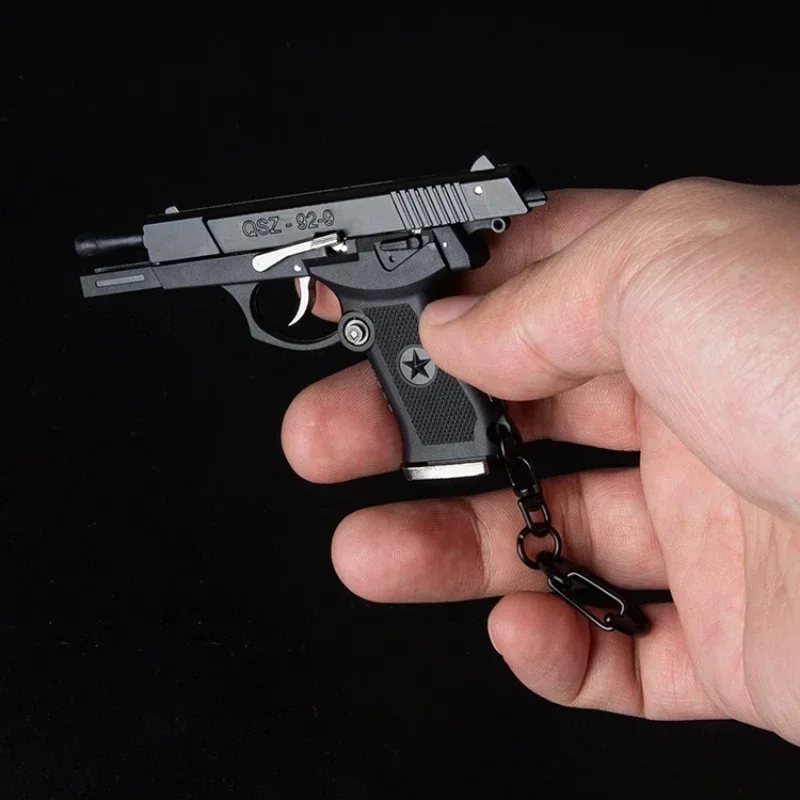 Imagine adding a sleek, detailed miniature firearm to your collection—this this Mini Beta Metal Model Toy Gun brings modern design and authentic aesthetics to your space. Crafted at a 1:3 scale from high-quality metal, it features models like M92A1, M92A1 Wood Grain, M92A1-1, QSZ92-Black, and QSZ92-Silver, each meticulously finished with a mix of matte and shiny metallic textures. The brown wooden grips on some models add warmth and realism. Perfect as a PUBG-themed keychain or office decoration, it captures the lifelike details such as trigger guards, slide serrations, and barrel features for visual appeal. Its sophisticated look makes it ideal for display, gaming, or as a unique gift for enthusiasts.