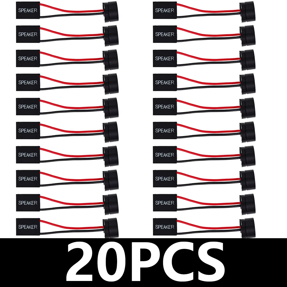 Enhance your computer’s monitoring system with this set of mini plug speakers, available in packages of 5, 10, or 20 units, designed specifically for internal BIOS, motherboard, and case buzzer alarm functions. These sleek black rectangular modules feature white labeling for easy identification and are equipped with flexible red and black insulated wiring, connected to compact black cylindrical caps for secure mounting. Ideal for onboard use, each buzzer offers a simple, functional design with dimensions such as a 12mm diameter connector and 50mm length. Customized and semi-custom options ensure precise compatibility, providing reliable beep alarms to keep your system running smoothly and confidently.
