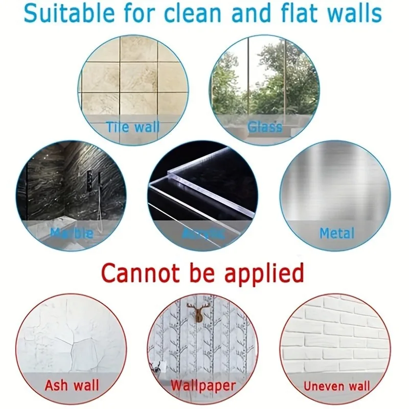 - Self-adhesive backing ensures easy, tool-free installation on walls, ceilings, or glass surfaces without trace marks.