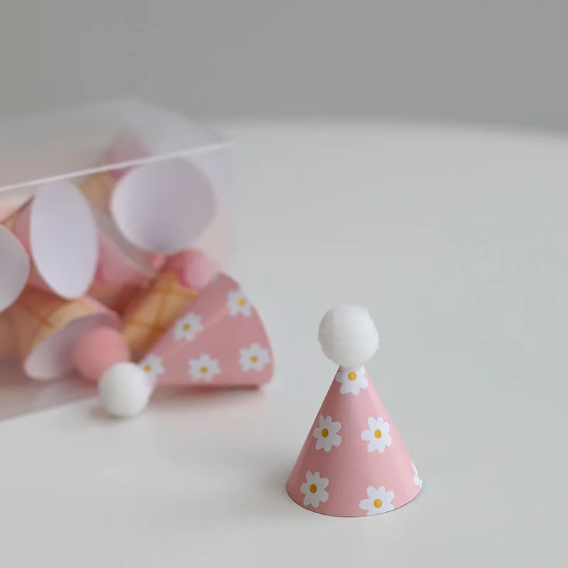 Transform your party desserts into fun, lively decorations with this set of mini birthday hat toppers. Easy to assemble and available in various vibrant colors, they bring a cheerful, festive touch perfectly suited for any special occasion. Instantly elevate your cake presentation and delight your guests—these toppers will make your event more memorable. Whether for a birthday, wedding, or holiday, this collection combines playful design with practicality, ensuring your celebrations are filled with color and fun. Add them to your cart today and start creating joyful moments!