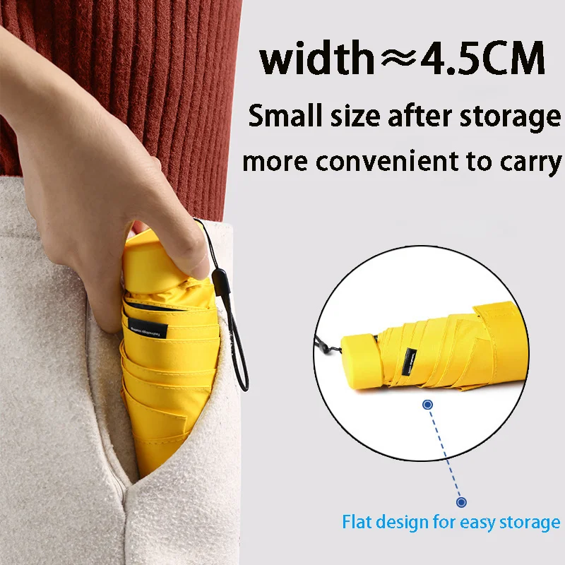 Embrace the simplicity and practicality of this mini compact umbrella for women. Whether you're running errands or heading to work, this umbrella offers reliable sun and rain protection in a sleek, portable package. Its windproof and UV protection features enhance your comfort, while the small size ensures it’s always within reach. Don’t let weather ruin your day—invest in this versatile umbrella and enjoy the confidence that comes with being prepared for any weather. Make it your go-to accessory for stylish, functional protection wherever life takes you.