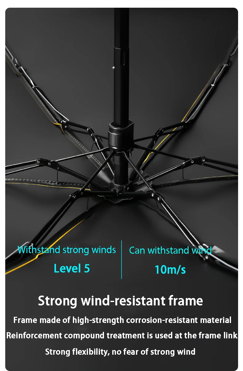 - Windproof construction ensures stability against gusts, preventing the umbrella from flipping inside out during breezy conditions.