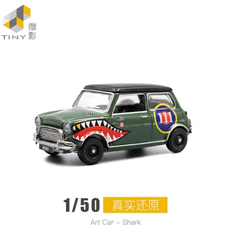 The 1:50 scale model of the Mini Cooper Mk1 is an exquisite piece of artistry that every collector will cherish. Elegantly designed in a military green color with a glossy finish, this diecast model captures attention instantly. With playful red and white jaw-like teeth graphics, it adds a unique flair to any display. A matte black roof complements its two-tone design, while clear plastic windows allow a glimpse into the detailed interior. Perfect as a decorative piece or a memorable gift, this model connects the joy of classic design with modern aesthetics, making it a must-have for enthusiasts and collectors alike.