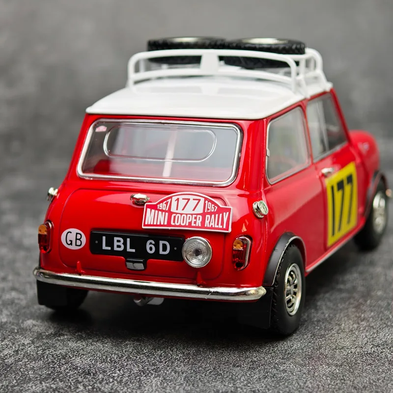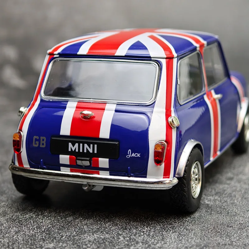 Imagine adding this highly detailed, eye-catching miniature to your collection. Crafted with precise attention to detail, this 1:18 scale die-cast model captures the classic style of the Mini Cooper Morris 1300, showcasing vibrant paintwork and intricate decals. The model’s two variations—one with a vibrant blue Union Jack-inspired racing stripe design (“Mini 177”) and the other with a bold red body accented with yellow racing decals—is perfect for display in a collection or as a thoughtful gift. Its realistic design includes chrome grills, transparent headlamps, and authentic detailing that recreates the rally car spirit. Made from sturdy metal, this model promises durability and a stunning visual impact for any passionate car enthusiast.