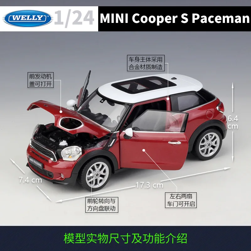 - This 1:24 scale model is crafted from durable metal, ensuring longevity and collectible quality, capturing every detail of the real Mini Cooper S Paceman for an authentic display.