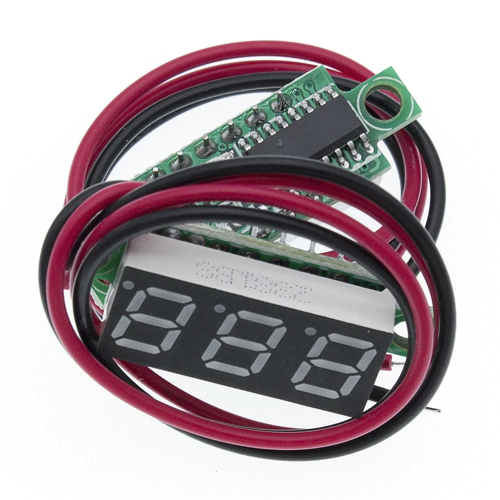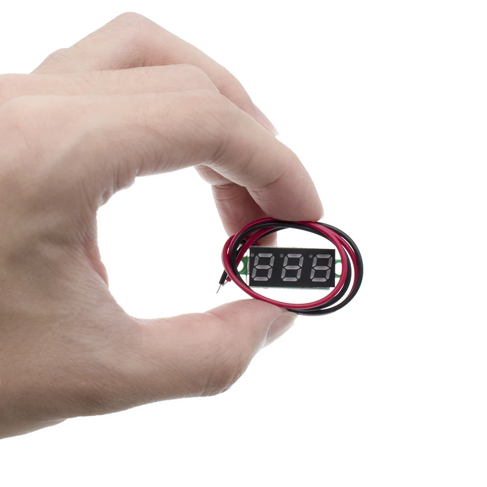This compact digital voltmeter features a 0.28-inch LED display measuring 30mm x 10mm x 8mm, available in four color options: red, blue, yellow, and green. Operating within a voltage range of 2.5V to 40V and consuming approximately 1 watt of power, it provides accurate voltage readings ideal for circuit testing and electronic maintenance. Its sleek, minimalist design with high-contrast digits ensures clear visibility, making it an essential tool for technicians and electronic enthusiasts. Perfect for use as a voltage regulator tester or for integration into computer and device circuits, this reliable and customizable device offers precision in a small, portable package.