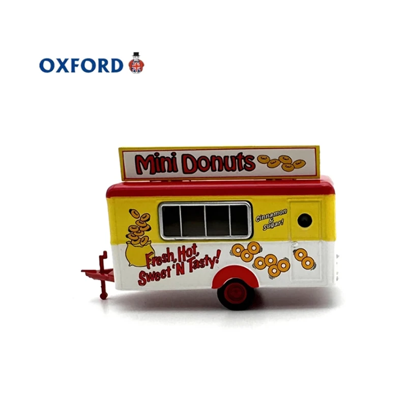 Bring home this vibrant 1:76 scale diecast alloy replica of a mobile donut trailer, measuring approximately 7 cm in length, 2.5 cm in width, and 4.2 cm in height. Featuring a bright yellow and white color scheme with a bold red roof, this whimsical collectible showcases playful graphics, including a “Mini Donuts” sign and cartoon-style donut images. With a glossy, durable finish, it captures the charm of a miniature storefront perfect for display. Designed for adult collectors and enthusiasts, it is a static, non-motorized model made from alloy, ideal for ages 14 and above.