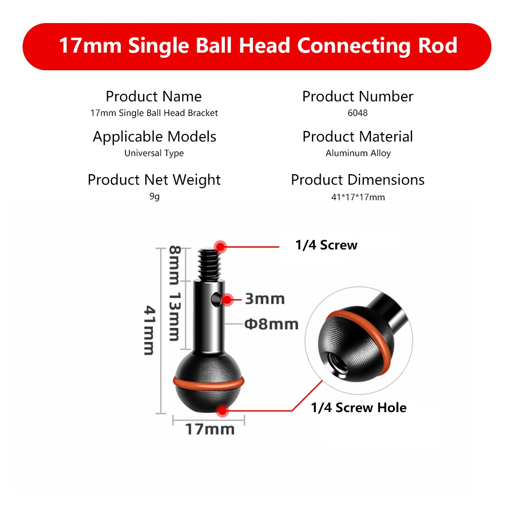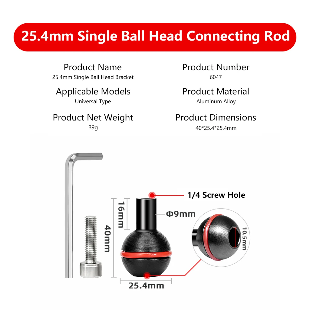 - Contains two ball heads measuring 17mm and 25.4mm, providing flexible angles and secure positioning for various mounting situations.