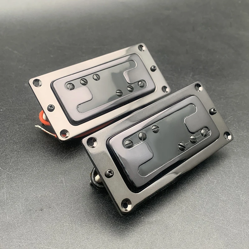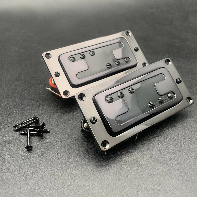 Experience a sleek, modern upgrade to your electric guitar with this high-quality mini style dual-coil humbucker pickup. Designed to provide a powerful and clear sound, it features a compact rectangular shape with rounded edges, finished in a glossy black surface that adds a sophisticated look to your guitar's aesthetics. The horizontally aligned metal covers protect the internal magnets and coils, lending a professional appearance. Its minimalist design emphasizes durability and precision, making it suitable for both neck and bridge positions. The pickup’s lightweight construction weighs approximately 140 grams, ensuring it enhances your instrument without adding excessive weight. Easy to install, this pickup is your gateway to richer, more versatile tones.