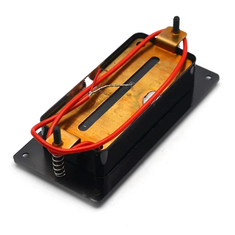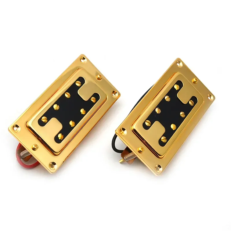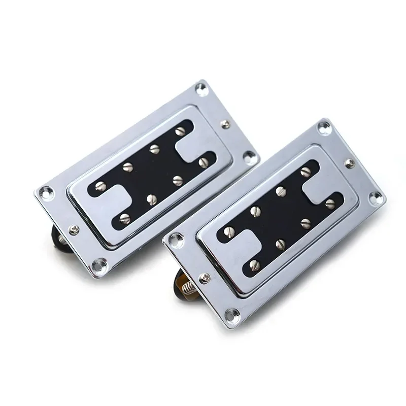 Enhance your 4-string electric bass with this professional mini style humbucker pickup, featuring a sleek rectangular design in black, gold, or chrome finishes. With a 44mm pole spacing and double coil configuration using ceramic magnets, it offers powerful sound and excellent noise reduction. Each pickup weighs 134 grams and connects via a durable two-core cable, suitable for both neck and bridge positions thanks to its 8 mounting holes. Perfect for upgrading or customizing your instrument, these pickups deliver high performance without batteries, providing a stylish and functional addition to your bass guitar. Available individually or as a pair for versatile sound shaping.