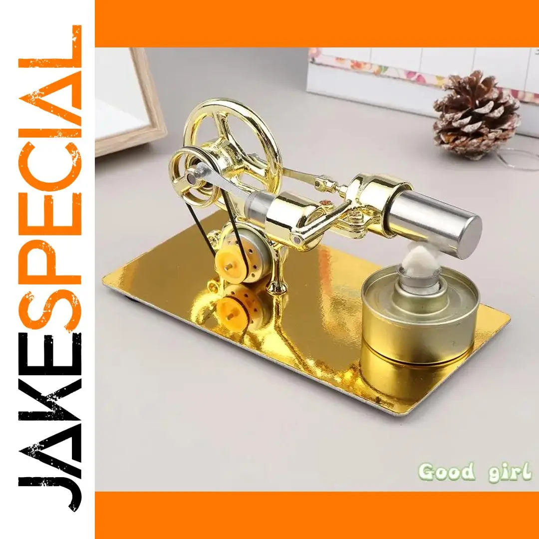 Experience the beauty of engineering with this visually stunning miniature external combustion Stirling engine. Crafted from high-quality metal and finished in a polished gold hue, this model showcases intricate details including a sleek hot chamber, silver-colored cylinders, and a dynamic flywheel with support spokes. Its compact size—16cm long, 8.7cm wide, and 7.3cm high—makes it a perfect addition to your collection or as an educational demonstration piece. Whether displayed in a study, classroom, or used as a thoughtful gift, this model emphasizes craftsmanship and educational value. Its elegant design and metallic finish evoke a sense of sophistication, inspiring curiosity in physics and mechanical principles.