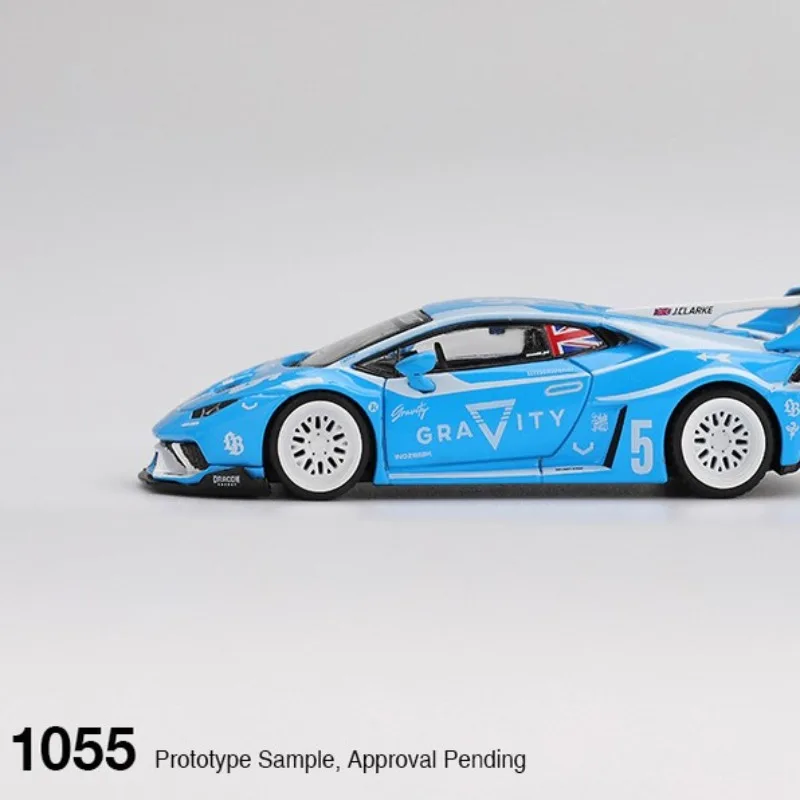 Experience the thrill of racing with this MINI GT 1:64 scale Lamborghini Huracan GT diecast model, crafted with exceptional precision. Measuring approximately 7 centimeters, this collectible showcases a vibrant light blue finish highlighted by bold white and black accents. The sleek aerodynamic design features sharp lines, detailed vents, and a prominent rear spoiler with contrasting black top surfaces and light blue supports, embodying high-performance aesthetics. The model's interior is visible through the transparent windshield, revealing realistic seats and a detailed dashboard. Crafted from alloy with a plastic chassis and soft rubber tires, it exudes craftsmanship and durability. Perfect for adult enthusiasts, this static ornament elevates any collection, capturing the essence of racing elegance in miniature form.