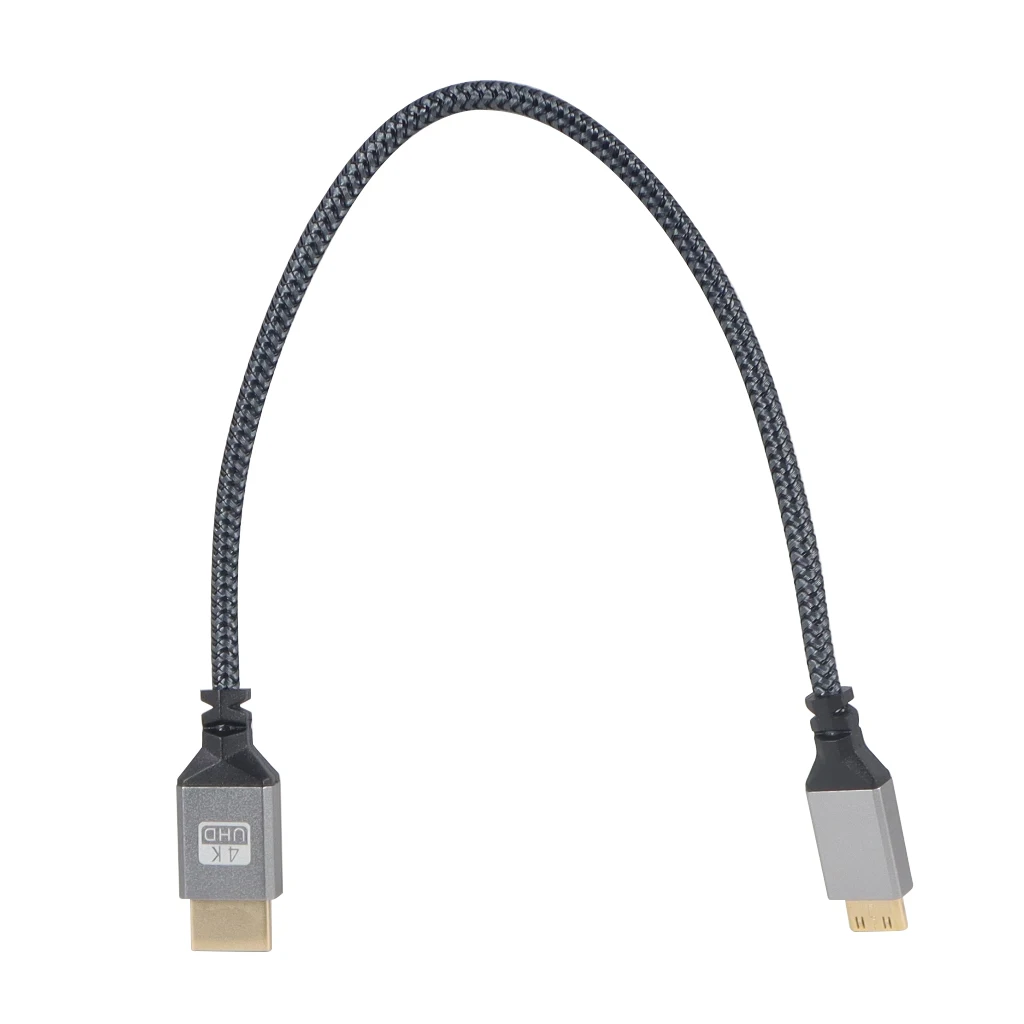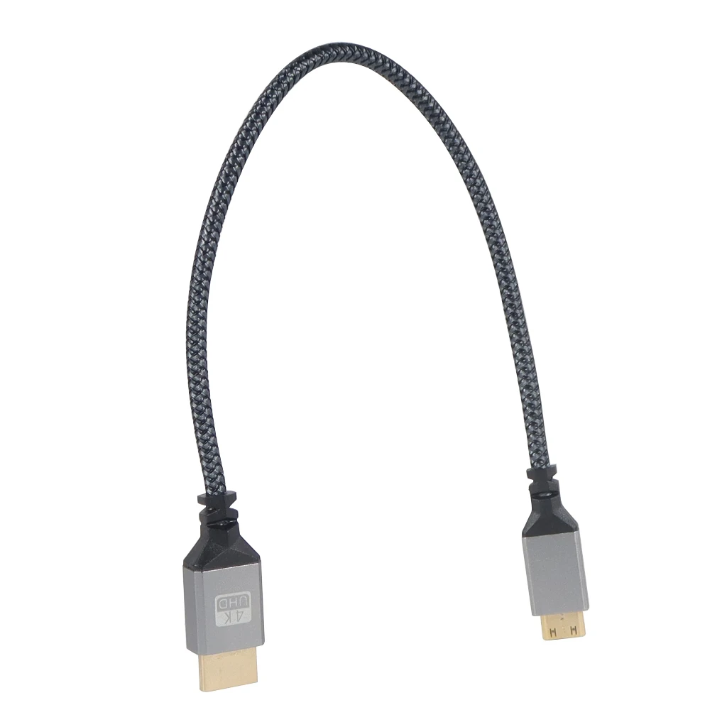 Experience seamless high-definition video transfer with this durable mini HDMI-compatible to HDMI-compatible cable, available in lengths of 1m, 1.5m, 2m, 3m, and 5m. Its 5.0mm outer diameter and copper-clad steel core with 14+1 conductors ensure reliable performance, enhanced by a shielding layer to prevent signal interference. The black nylon braided outer sheath offers exceptional flexibility and durability, while the aluminum alloy shell adds a sleek, industrial aesthetic. Capable of supporting 4K resolution at 60Hz, it’s perfect for connecting HDTVs, tablets, monitors, cameras, and projectors, providing a reliable, high-quality connection for all your high-definition video needs.