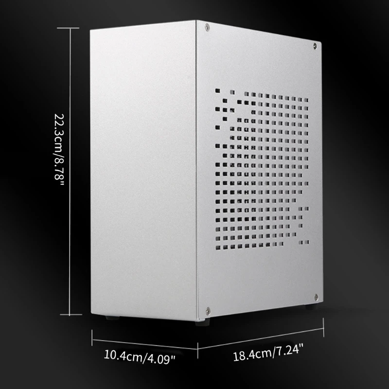 Imagine transforming your gaming or home theater setup with this sleek, minimalist aluminum HTPC mini ITX chassis. Perfect for high-performance systems, it offers a durable 2.0mm thick aluminum frame that ensures effective heat dissipation and reliable support for your components. Its compact size of approximately 223mm x 104mm x 184mm makes it ideal for space-saving setups while maintaining maximum functionality. Designed with simplicity and airflow in mind, the case features a uniform grid of ventilation holes on the sides, helping keep your system cool during intensive gaming sessions. Supported by the latest hardware standards, this case allows you to build a powerful, visually appealing, and efficient mini PC.