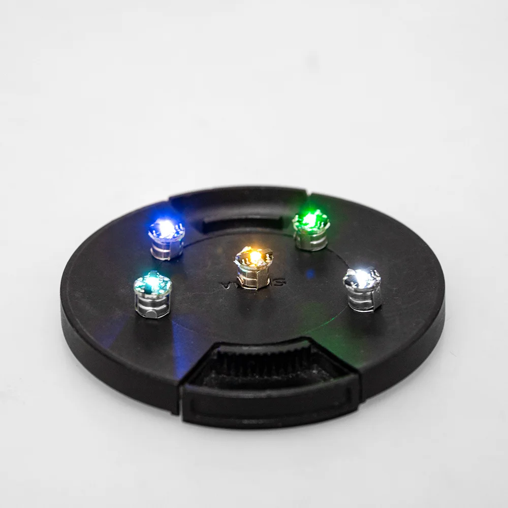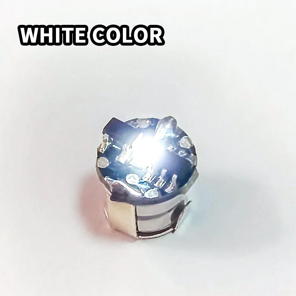 Enhance your DIY projects with this set of three miniature magnetic control LED lamps, measuring approximately 7.5 x 7 mm. Crafted from durable plastic with a sleek metallic silver finish, each lamp features a rounded, slightly domed top with circular cut-outs, revealing vibrant internal LEDs. The lamps come in an array of colors, including blue, green, ice blue, orange, purple, red, rose pink, warm white, white, and yellow, adding a colorful and modern touch to any model or diorama. Easily controlled by an external magnet, these lamps are ideal for robotics, airplanes, cars, and miniature displays, offering precise, customizable illumination for your creative projects.