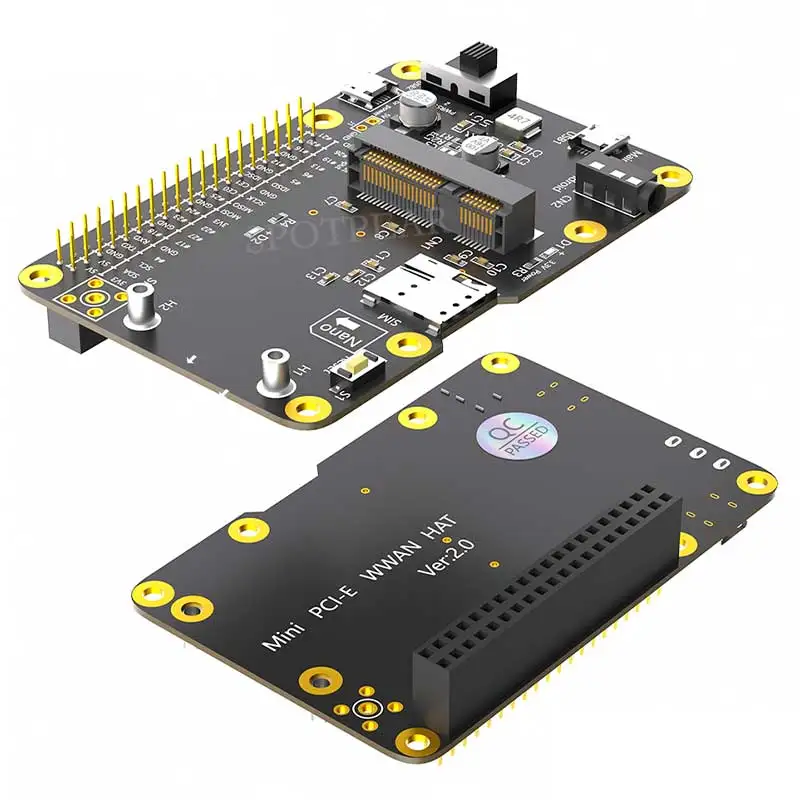 Envision your projects effortlessly connecting to global cellular networks with this highly compatible Mini-PCIe WWAN HAT. Its sturdy, compact design integrates seamlessly into your Raspberry Pi or alternative boards, opening up new possibilities for remote monitoring, IoT applications, or mobile data solutions. Whether you're building a standalone device or enhancing an existing embedded setup, this HAT provides reliable, efficient connectivity. Its broad compatibility with major modules and support for international carrier networks ensure your project stays connected wherever you go. Invest in this essential component today and take your cellular communications to the next level. Experience the perfect blend of technical excellence and practical design tailored for adult enthusiasts and professionals alike.