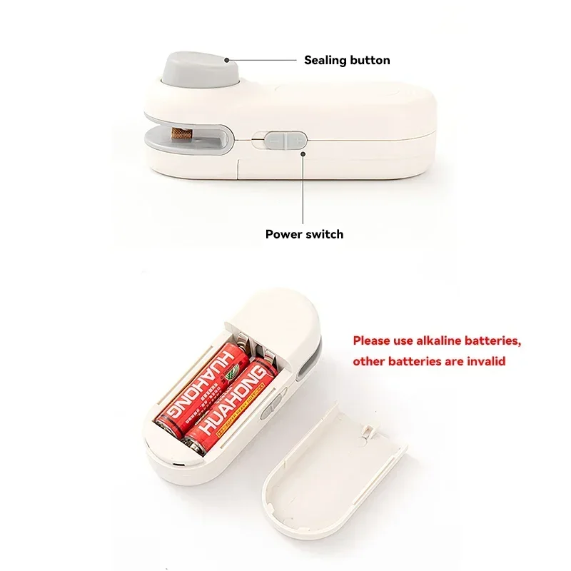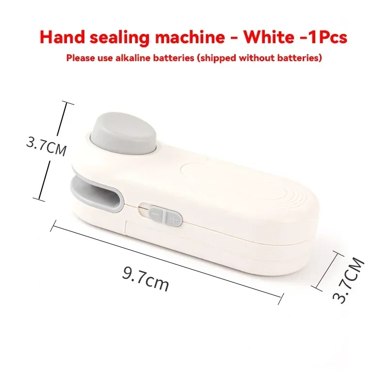 - This portable, hand-held device operates via manual hand pressure, eliminating the need for batteries or external power sources, perfect for quick, everyday sealing needs.