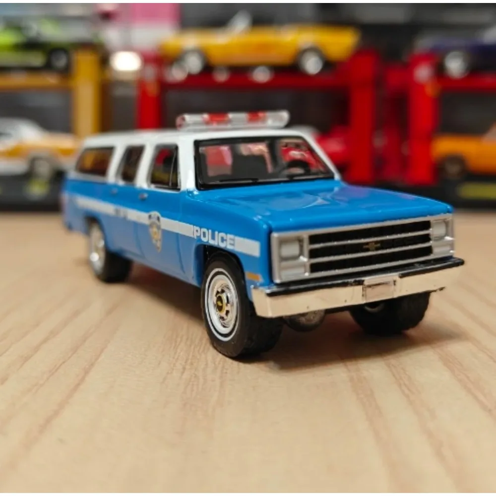 Step into the world of realistic collectibles with this meticulously crafted miniature police SUV. Designed at a 1:64 scale, it captures every detail from the shiny blue body to the white roof and side stripe, creating an authentic police vehicle appearance. The model features a sleek black grille, clear headlights, black side mirrors, and a white light bar with red and clear lenses on the roof, adding to its realistic emergency look. Its alloy and plastic construction provides durability and a polished metal finish. The transparent windows give a glimpse into the detailed interior, making it an ideal addition to any collection or display. Whether you’re a model enthusiast or adding to a role-play scene, this mini SUV offers both aesthetic appeal and fine craftsmanship.