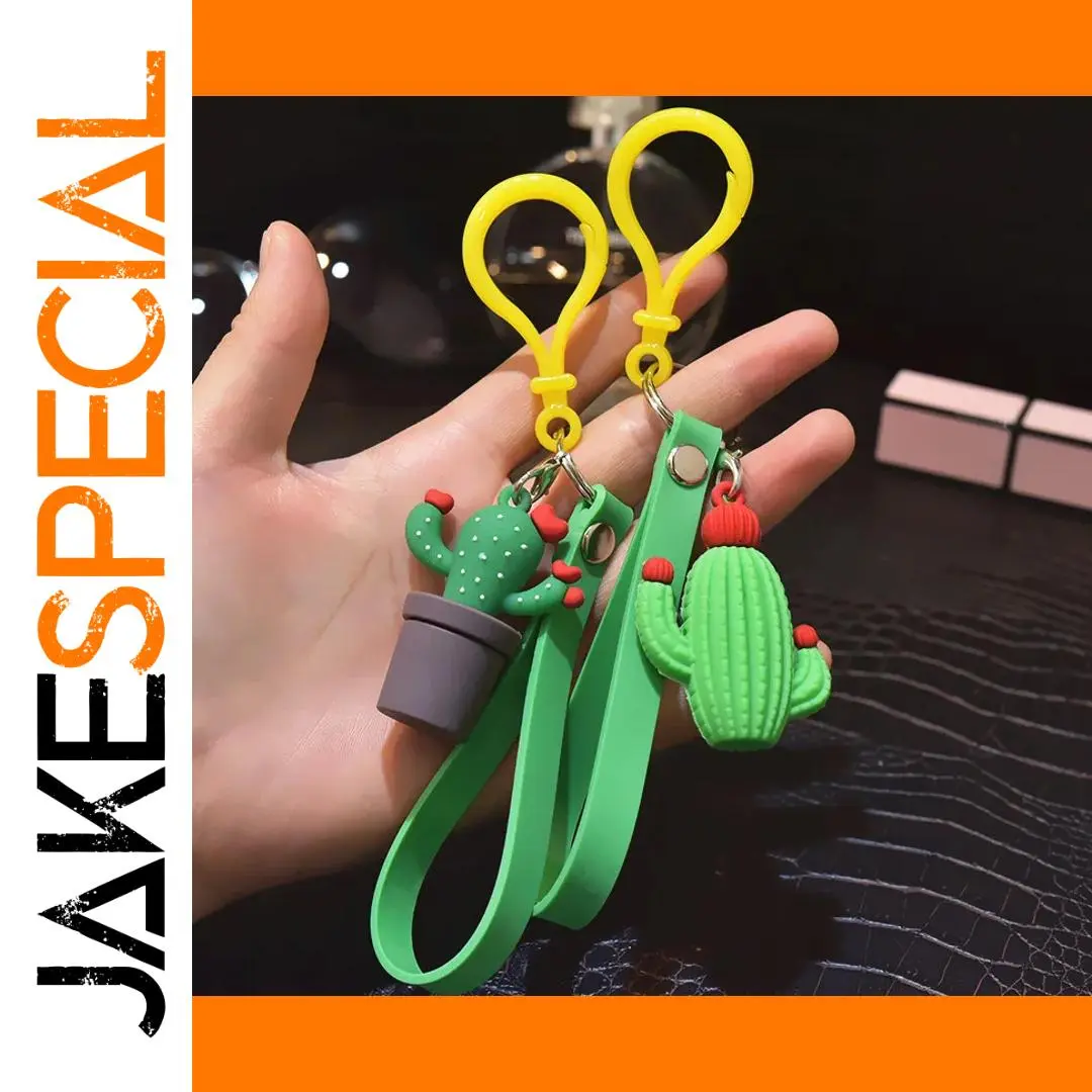 Experience the charm of this playful keychain that perfectly combines fun and fashion. Featuring colorful, cartoon-style mini cacti, each piece showcases vibrant shades of green with tiny red accents at the tips, adding a lively touch. Crafted from durable plastic with detailed ribbing and protrusions to mimic real cactus textures, these keychains are attached to bright yellow silicone straps with sturdy metal connection points. Available in elegant silver or gold plating, they measure approximately 5 cm in length, making them an ideal accessory or gift. The trendy design appeals to unisex tastes and is perfect for adding a cheerful vibe to your keys, bags, or accessories, bringing a little nature-inspired fun into everyday life.