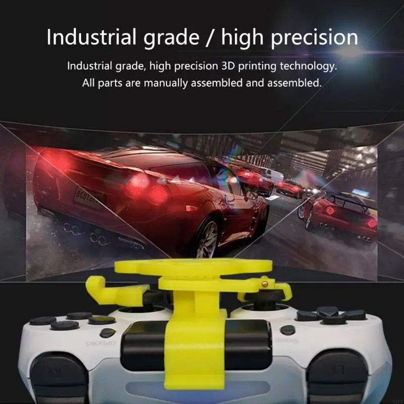 Experience a new level of immersion with this this mini racing steering wheel designed for PlayStation 4 controllers. Crafted from eco-friendly PLA, durable metal with 40% metal content, and reinforced with high-rigidity carbon fiber, it offers a perfect combination of strength and flexibility. Its compact size of 11×7×5.5 cm makes it easy to handle, while its 100-degree steering rotation allows for precise control. Compatible with four controllers simultaneously, it supports popular games such as PUBG Mobile, Rules of Survival, Survivor, and Critical Ops. The steering sensitivity is adjustable, with a recommended setting above 75 for the most accurate response. Featuring luminous accents, ergonomic alloy triggers, and textured grips, this steering wheel transforms your racing experience into a realistic and thrilling adventure.