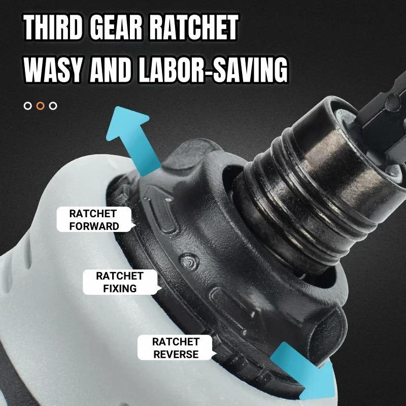 - Labor-saving ratchet design reduces effort for turning screws.