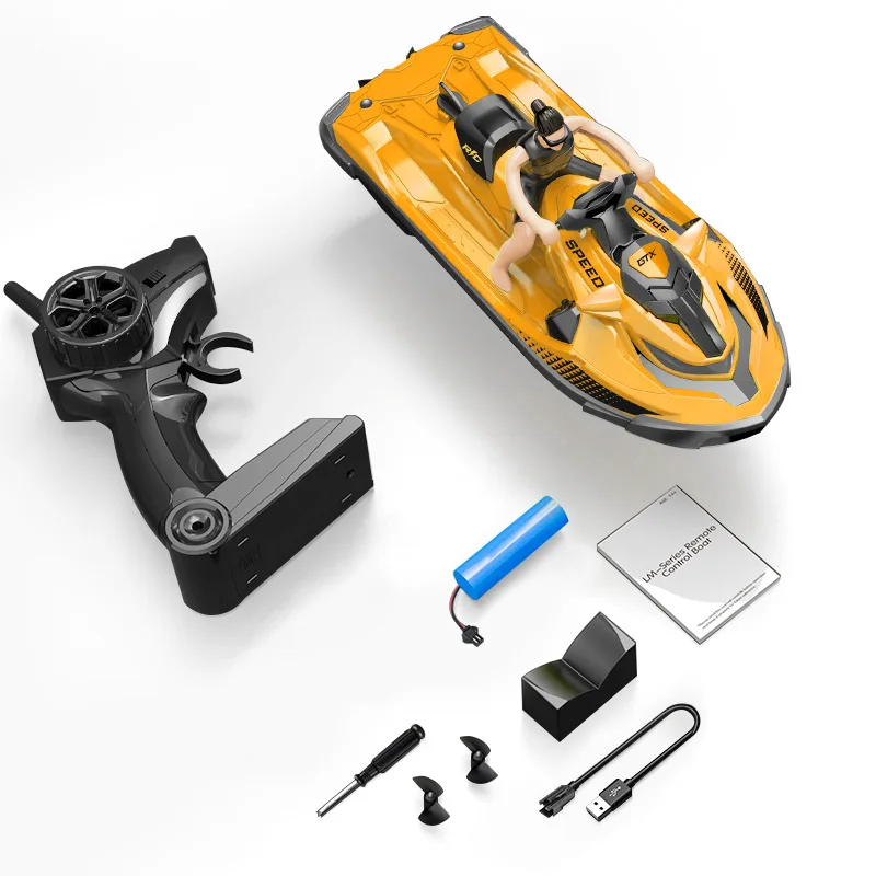 Imagine yourself eagerly controlling this sleek, mini jet ski-inspired RC boat, the LM13-A, gliding smoothly across the water with exhilarating speed. Crafted from durable metal and plastic, this electric motorboat offers up to 20 minutes of thrilling sailing time after just a 60-minute charge. With a remote control operating at 2.4G frequency and an impressive 50-meter control distance, you can enjoy precise maneuverability with multiple channels. Whether you're relaxing alone or enjoying competitive fun with friends, this boat promises an engaging experience. Its realistic features, including lighting, speed modes, and safety switches, make each adventure exciting and safe. Bring home this remote-controlled masterpiece and create unforgettable water adventures today!