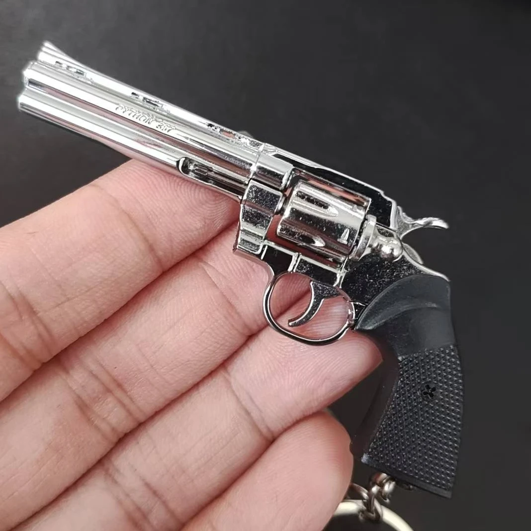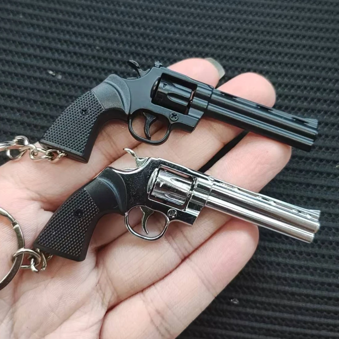 This 1:3 mini revolver pistol model keychain is a stylish and edgy accessory crafted from durable metal. Perfect for adult collectors and enthusiasts, it features a detachable alloy design that mimics a real firearm, making it an eye-catching ornament for bags or keys. Compact yet detailed, it serves as a unique gift or personal statement piece, adding a touch of boldness to your everyday accessories. Whether you’re a collector of novelty items or looking for a cool, conversation-starting ornament, this mini revolver keychain offers a blend of craftsmanship and attitude, ensuring it stands out in your collection.