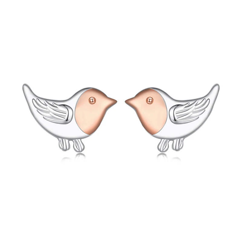 Enhance your jewelry collection with these delicate mini robin bird stud earrings, crafted from genuine 925 sterling silver and weighing approximately 0.8 grams. Featuring a charming two-tone finish of white gold and rose gold, each earring measures 0.6 x 1.0 centimeters and showcases a minimalist design with finely engraved wings, lively eye details, and slender legs. The push-back fastening ensures secure wear, making them perfect for special occasions such as parties, weddings, and anniversaries. These personalized, fine earrings exemplify sophisticated elegance and versatility, seamlessly adding a subtle yet captivating touch to your ensemble.