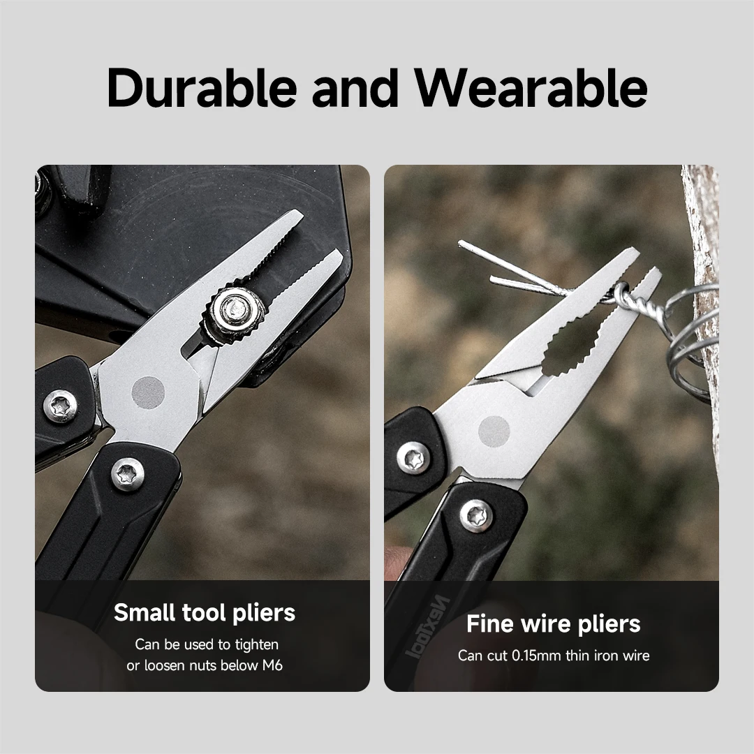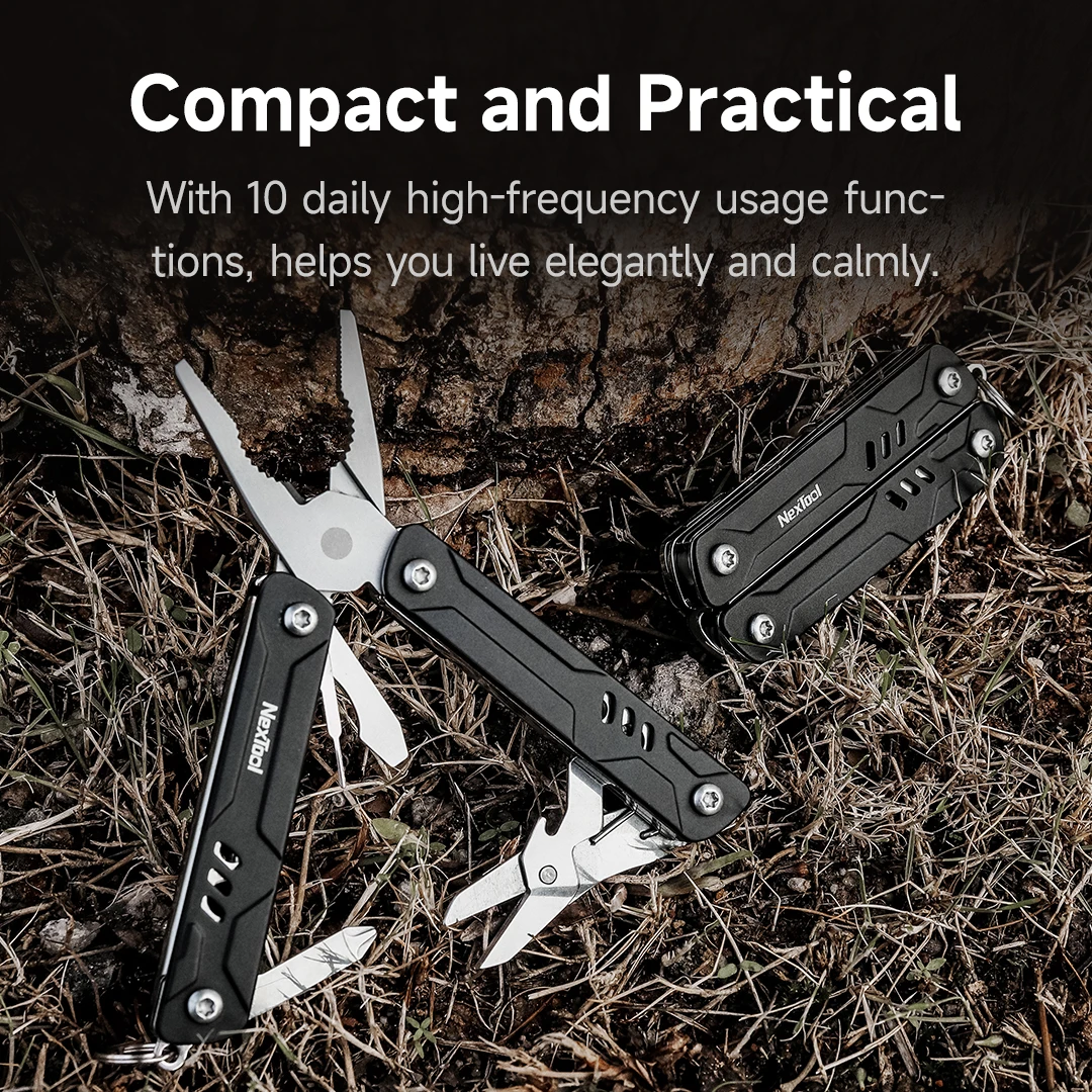 Experience the ultimate in portable versatility with the NexTool Mini Sailor Pliers Lite, a 10-in-1 folding multitool crafted from durable carbon steel. Featuring a European-style bent handle for ergonomic grip, this compact tool offers multiple functions in a sleek, bladeless design ideal for outdoor activities like camping and travel. Its modern black finish, matching accessory case, and textured serrated jaws combine rugged durability with contemporary style. Perfect for those who value efficiency and reliability, the Mini Sailor Lite seamlessly fits into your outdoor gear, ensuring you’re prepared for any task with a trusted, high-quality multitool.