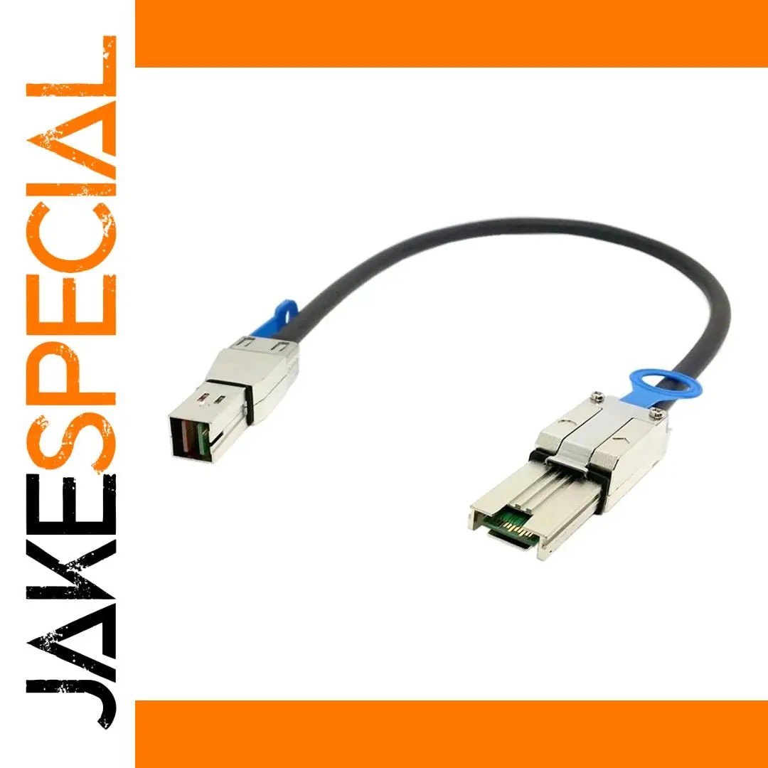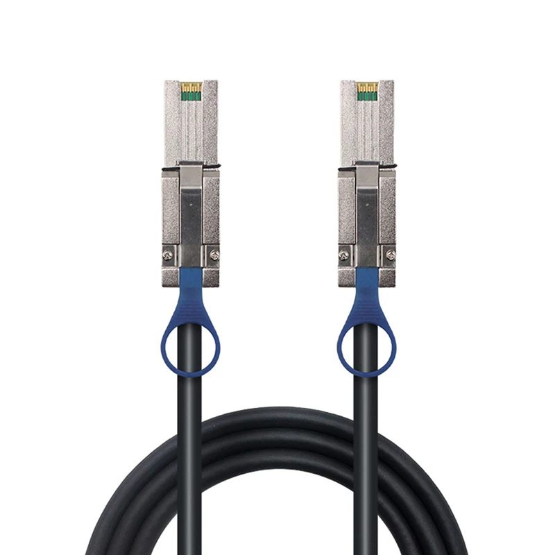 This high-performance external mini SAS data cable features a 26-pin SFF-8088 male connector on one end and a compatible male connector on the other, supporting high-density connections with data transfer speeds up to 6Gbps. Available in lengths of 50cm or 100cm, it is ideal for SCSI, SAS, and InfiniBand applications, connecting hard disks and other storage devices for seamless, high-speed data transfer. The sleek black exterior and robust metallic housings ensures durability and a professional appearance, while the precise engineering guarantees a secure fit, making it an essential accessory for professional storage solutions.