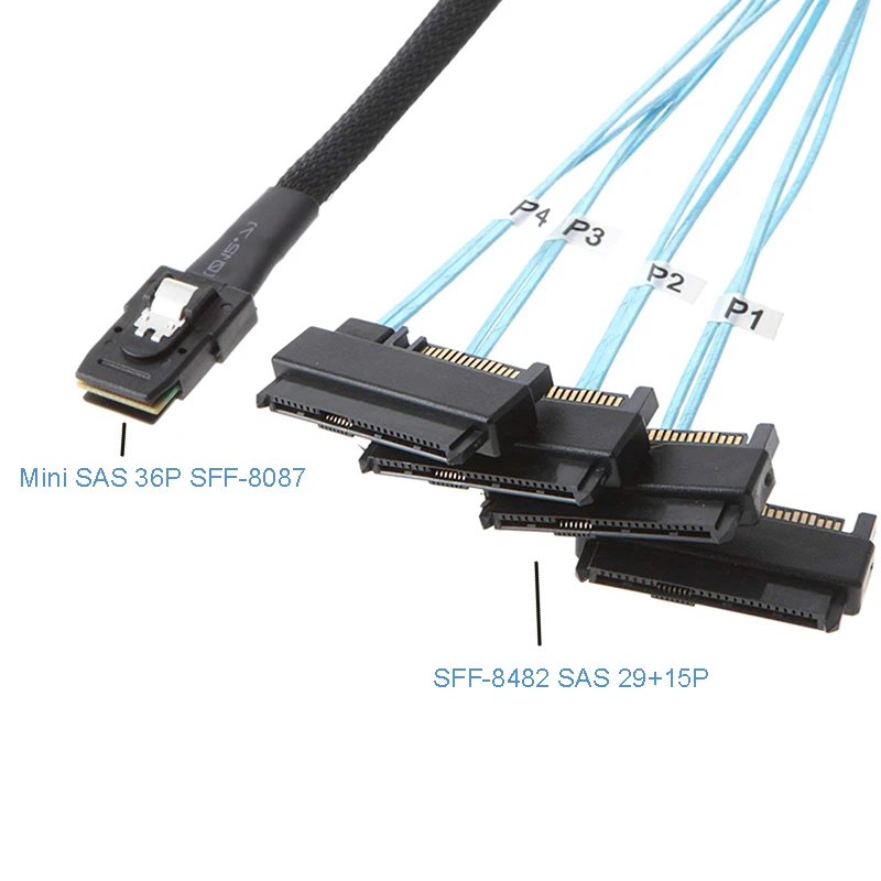 - Features a 36-pin SFF-8087 connector and a 29+15-pin SFF-8482 connector, perfect for connecting storage devices in server and PC environments.