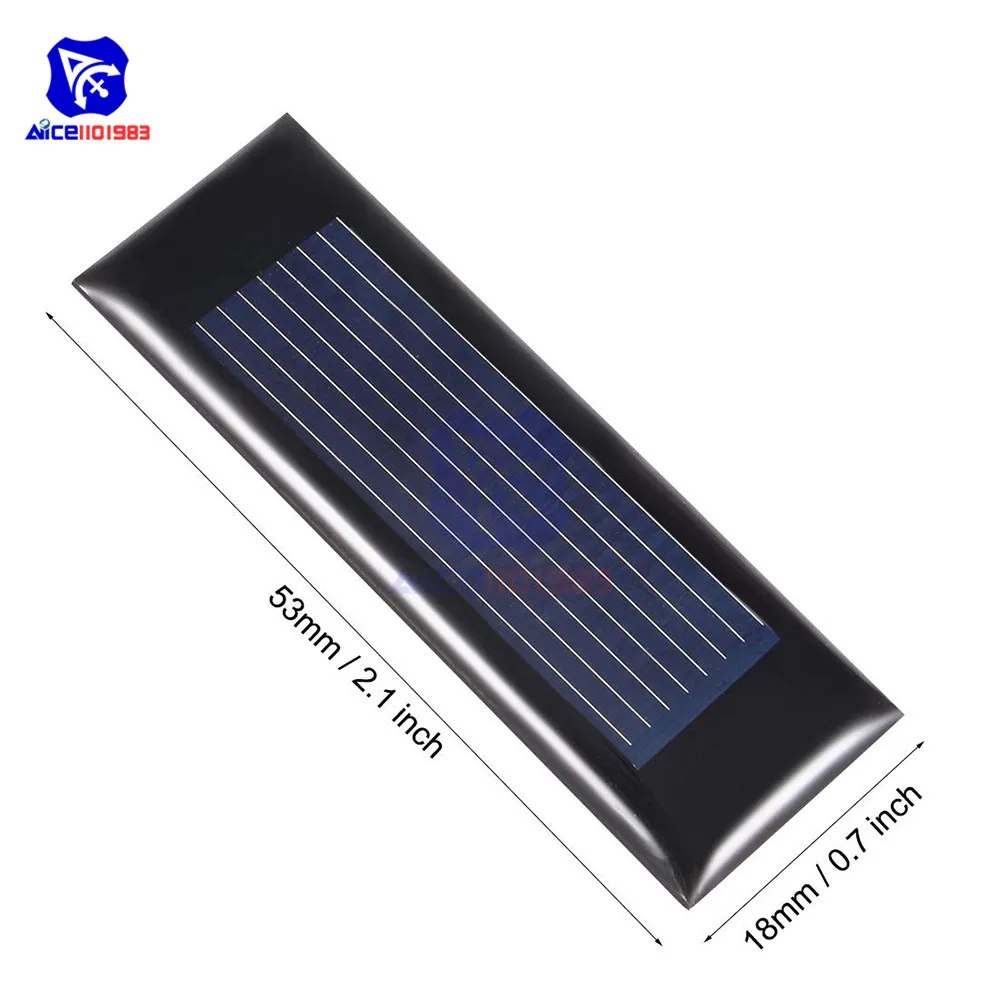 Imagine harnessing solar energy with this sleek, mini solar panel module, perfect for your custom battery charging solutions and innovative small-scale applications. Measuring just 53mm by 18mm and only 2.5mm thick, this lightweight component features a glossy, flat design with a striking blue photovoltaic surface framed by a black border. Its minimalist aesthetic combines functionality and modern style, making it an ideal choice for innovative enthusiasts. Whether you're developing a solar phone charger, backpack energy system, or small rural electrification project, this module offers reliable performance in a compact size. Your entrepreneurial or DIY project will benefit from its efficient, easy-to-integrate design, driven by precision engineering and quality materials.