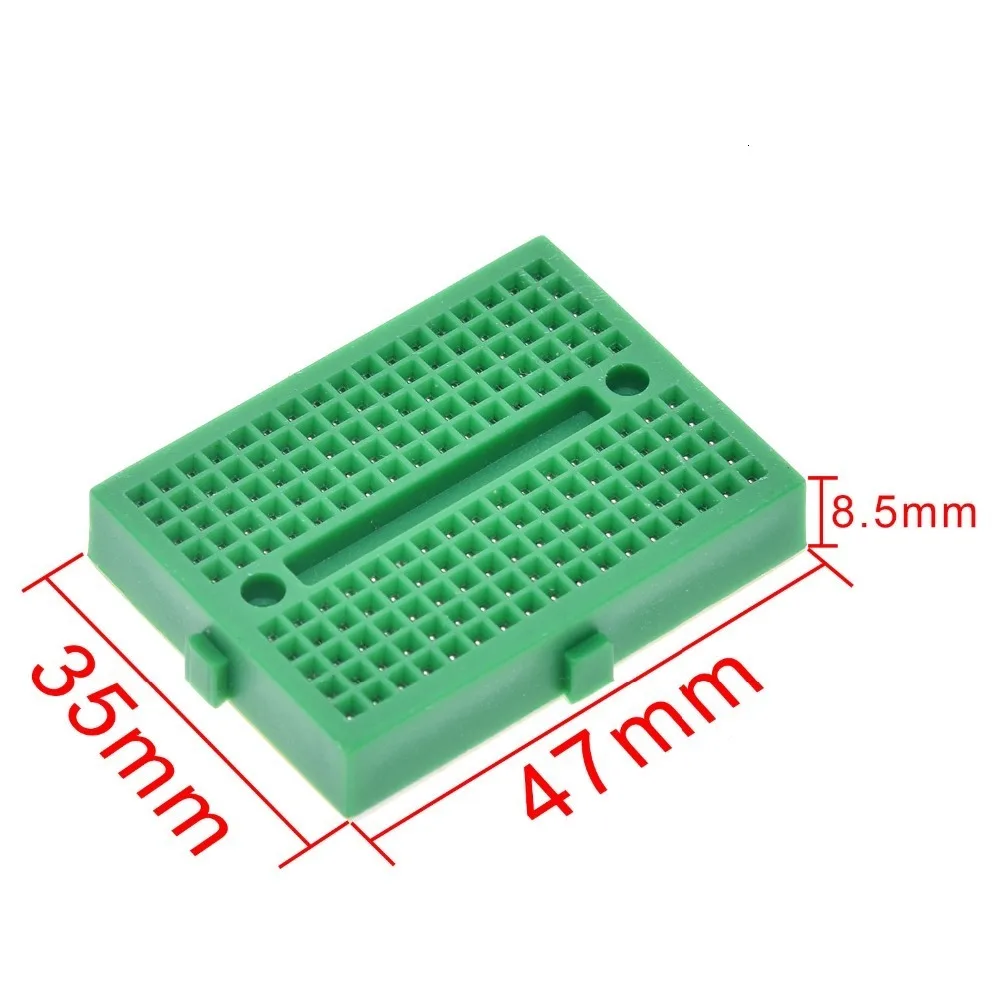 Imagine enhancing your electronics projects with this versatile, colorful mini breadboard. Measuring 35mm by 47mm with a height of 8.5mm, this solderless prototype test board features 170 tie points, providing ample space for testing and development. Its compact design makes it ideal for quick prototyping, educational purposes, or personal experiments. Available in six lively colors—white, green, blue, red, yellow, and black—you can easily organize your components through color coding. The smooth, structured surface ensures secure connections, and the central slot with mounting holes adds functional flexibility. Whether you're working on sensors, switches, or STM-based projects, this breadboard simplifies your setup for efficient development.