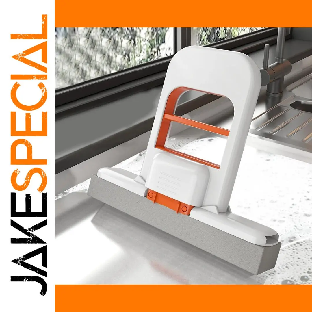 Experience effortless cleaning with this sleek, modern mini sponge mop designed for quick and efficient results. Its compact size and lightweight plastic pole make it perfect for tackling small surfaces like desktops, kitchen counters, sinks, bathroom tiles, glass surfaces, and even cars. The mop's soft, wide sponge head absorbs liquids in less than 10 seconds, streamlining your cleaning routine. The durable, gray plastic handle features a comfortable, curved grip that fits naturally in your hand, while the vibrant orange accents add a lively touch. The foldable wringing mechanism allows for easy dehydration of up to 80%, ensuring minimal mess and maximum convenience. This versatile tool enhances your cleaning experience, making tasks faster and simpler with its eco-friendly, ergonomic design.
