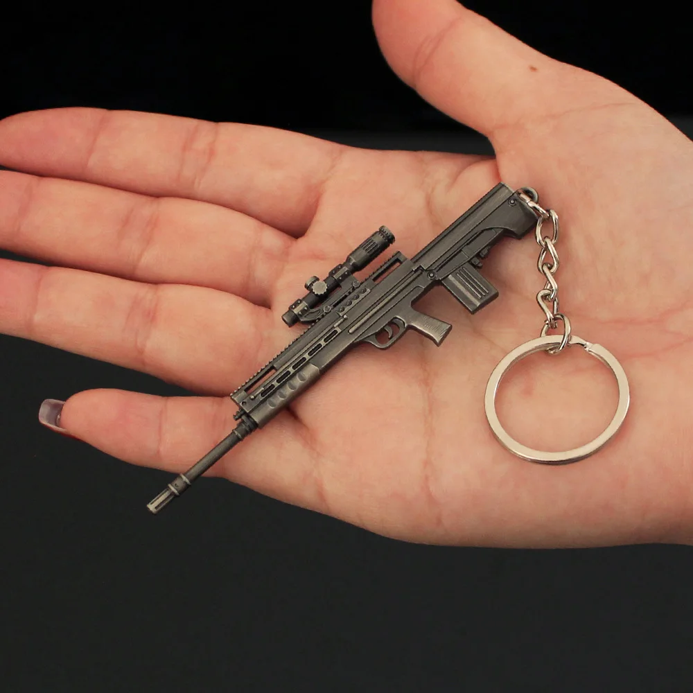 Enhance your accessories with this 9cm metal keychain modeled after the Arena Breakout T88 Sniper Rifle, crafted from durable zinc alloy in sleek black or gunmetal color. Featuring intricate details such as a mounted scope, tactical cutouts, and textured gun parts, the trendy design exudes masculinity and military-inspired style. Equipped with an O-shaped buckle, it easily attaches to keys, bags, or other items, making it perfect for everyday use or special occasions like parties, anniversaries, or weddings. This collectible piece combines fashion and function, offering a bold statement for enthusiasts who appreciate detailed craftsmanship and tactical aesthetics in a compact, stylish accessory.