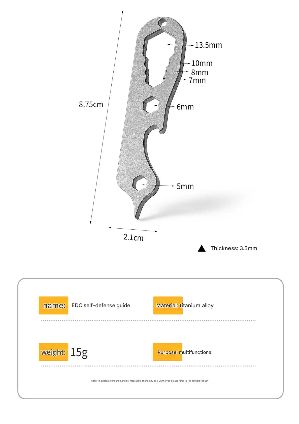 Imagine having this reliable, stylish tool by your side on every adventure—building confidence with its multifunctionality, durability, and sleek design. It’s more than just a keychain accessory; it’s your go-to device for everyday and emergency tasks. Whether camping, hiking, or simply ensuring you’re prepared, this tool's high-quality titanium construction ensures a long-lasting performance. Don’t miss out—enhance your gear collection today with this versatile, compact pry bar and screwdriver, designed to meet all your outdoor and survival needs with ease and style.
