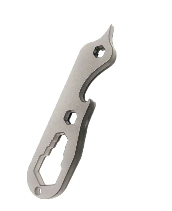 Feel confident with this sleek, compact tool crafted from durable titanium steel, measuring just 8.7 centimeters. Its modern design features a matte, textured finish available in sandblasted or stone wash, providing both elegance and resilience. This multi-functional device is perfect for outdoor enthusiasts and survivalists alike, combining practicality with portability. Use it effortlessly as a bottle opener, crowbar, nail remover, or even for prying and scraping tasks. Its curved lines, precise cutouts, and sturdy hook make it a reliable companion in any emergency or everyday situation. The lightweight yet robust construction ensures it is easy to carry and built to last, offering unmatched convenience and efficiency wherever adventure takes you.