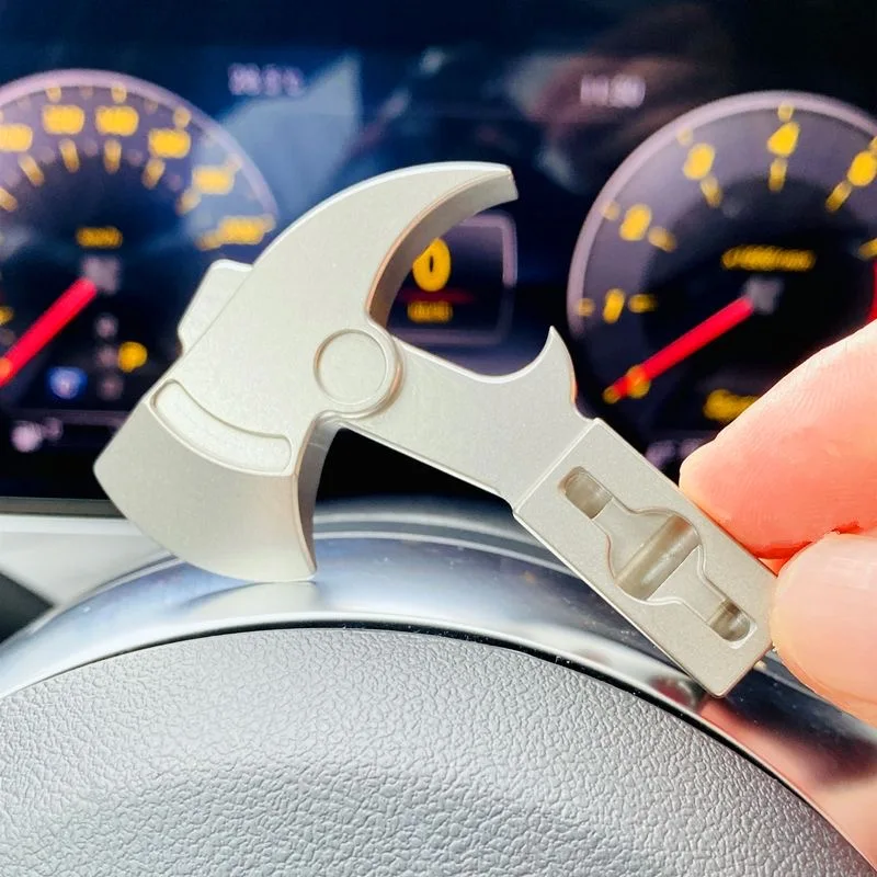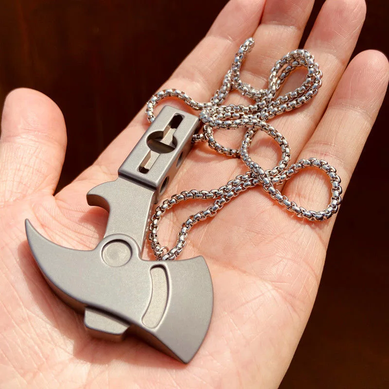 Experience the perfect combination of durability, portability, and multi-functionality with this mini titanium alloy axe. Designed for outdoor enthusiasts, campers, and survivalists, this sleek tool features a slim, tactical aesthetic with a matte metallic gray finish. Its ergonomic, curved handle ensures a firm grip during intense activities, while a small hole near the base allows for versatile attachment options using a multicolored cord. Measuring just 7 centimeters in length, 5 centimeters in width, and 1 centimeter thick, it’s lightweight at only 45 grams, making it easy to carry in your pocket or gear. The head resembles a blunt, flat mini axe or pry bar, with a curved top edge that doubles as a bottle opener—combining style, practicality, and reliability for your outdoor adventures.