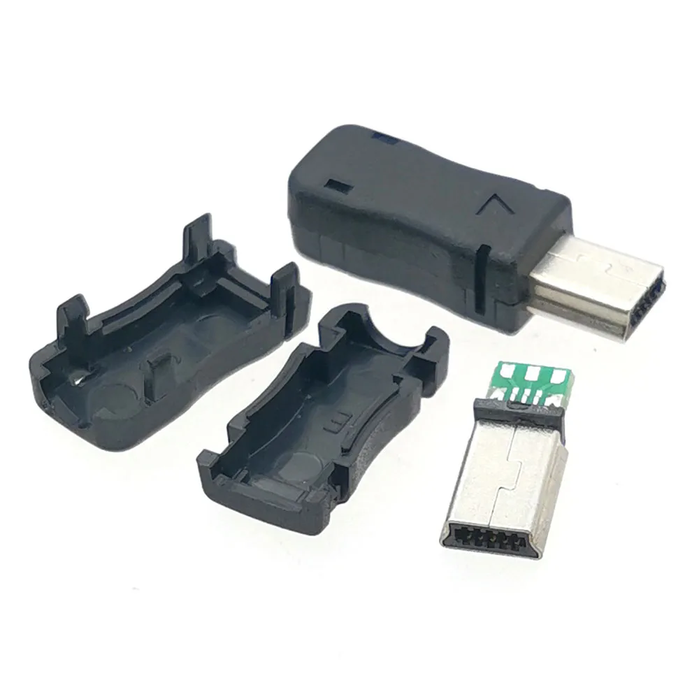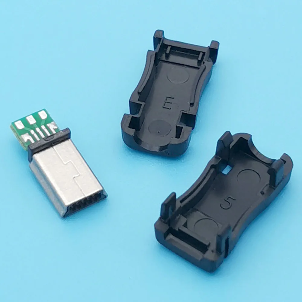 Enhance your DIY projects with this set of five mini USB male plug connectors, featuring a 2.0 standard with 5 pins each. Designed for versatility, these compact connectors support operating voltages of 5 V, 12 V, 20 V, and 30 V, making them suitable for a wide range of electronic applications. Each connector comes with a durable plastic cover to ensure protection and secure fitting. Crafted from high-quality materials, these sleek and functional connectors have a modern aesthetic with a shiny metallic exterior and smooth black housing. Perfect for hobbyists and professionals seeking reliable, easy-to-assemble USB solutions.
