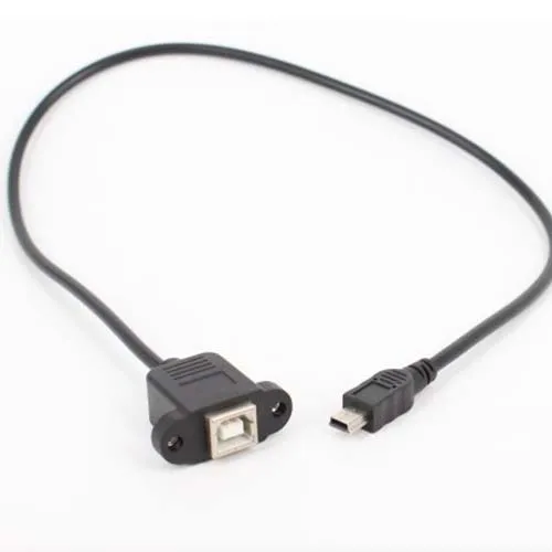 The 0.5m (50cm/1.67FT) Mini USB to USB 2.0 Type B Female Printer Panel Mount Cable features a compact Mini USB 5 Pin Male connector on one end and a USB 2.0 Type B Female panel mount on the other, designed for secure installation with included screws. This robust black cable connects printers, scanners, cell phones, digital cameras, and PCs with ease, ensuring reliable performance for various smart devices. Its durable connectors and sleek design make it an essential addition to your tech essentials.