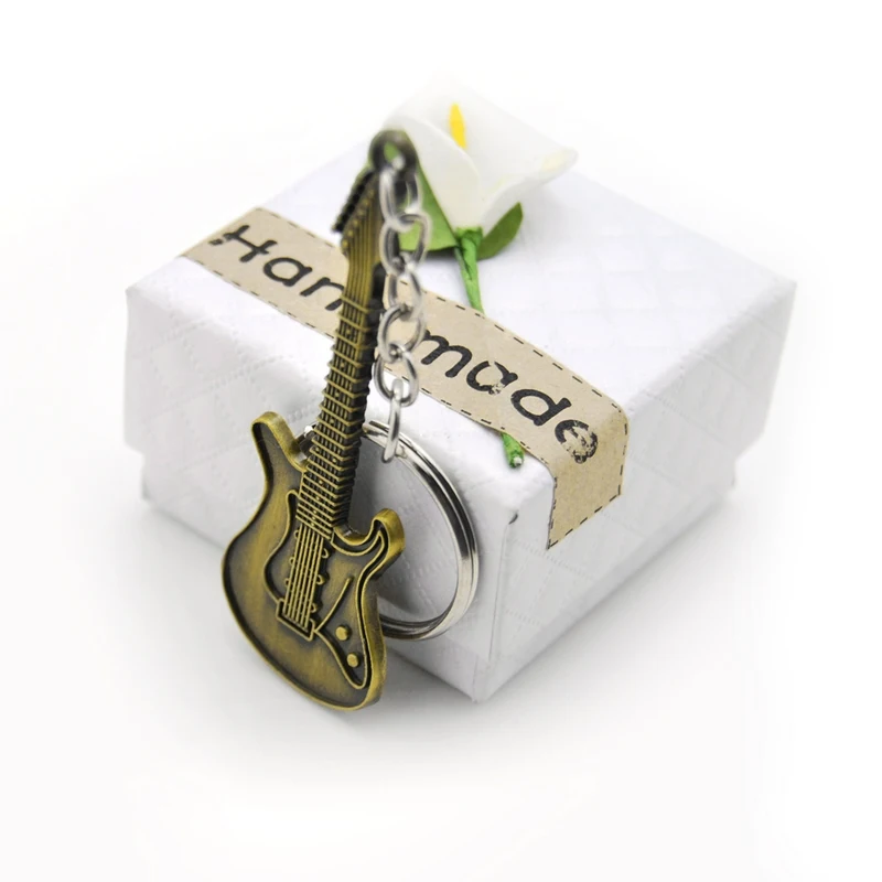 Mini Vintage Metal Guitar Keychain in Antique Finish