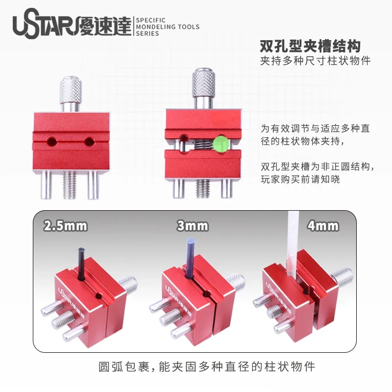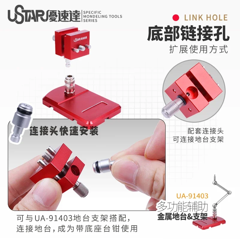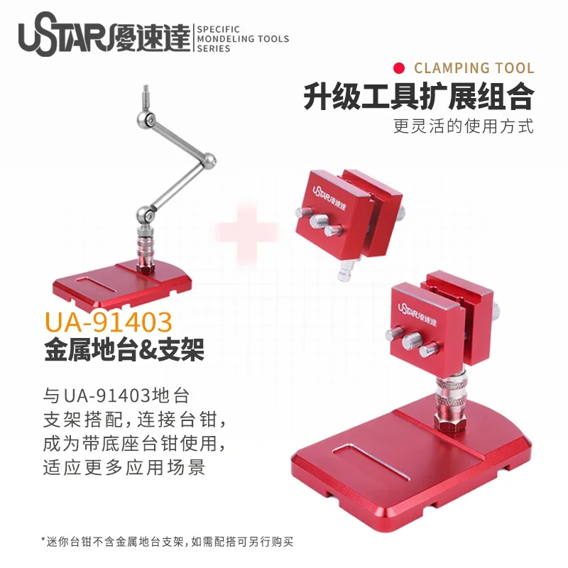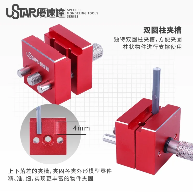 Elevate your hobby experience with this UA-90637 multi-function mini vise, crafted for 1:24 scale military model enthusiasts. Designed with a sleek, metallic sheen and vibrant red finish, this compact tool features textured, grooved gripping jaws for secure hold on delicate parts like airplane and motorcycle models. The adjustable knurled screw knob ensures precise clamping, while the sturdy threaded mounting socket offers stability during intricate work. Suitable for skilled hobbyists aged 14 and above, it contains no high-concern chemicals, making it both a reliable and safe addition to your toolkit. Perfect for detailed DIY projects, this miniature vise combines modern industrial style with functional elegance.