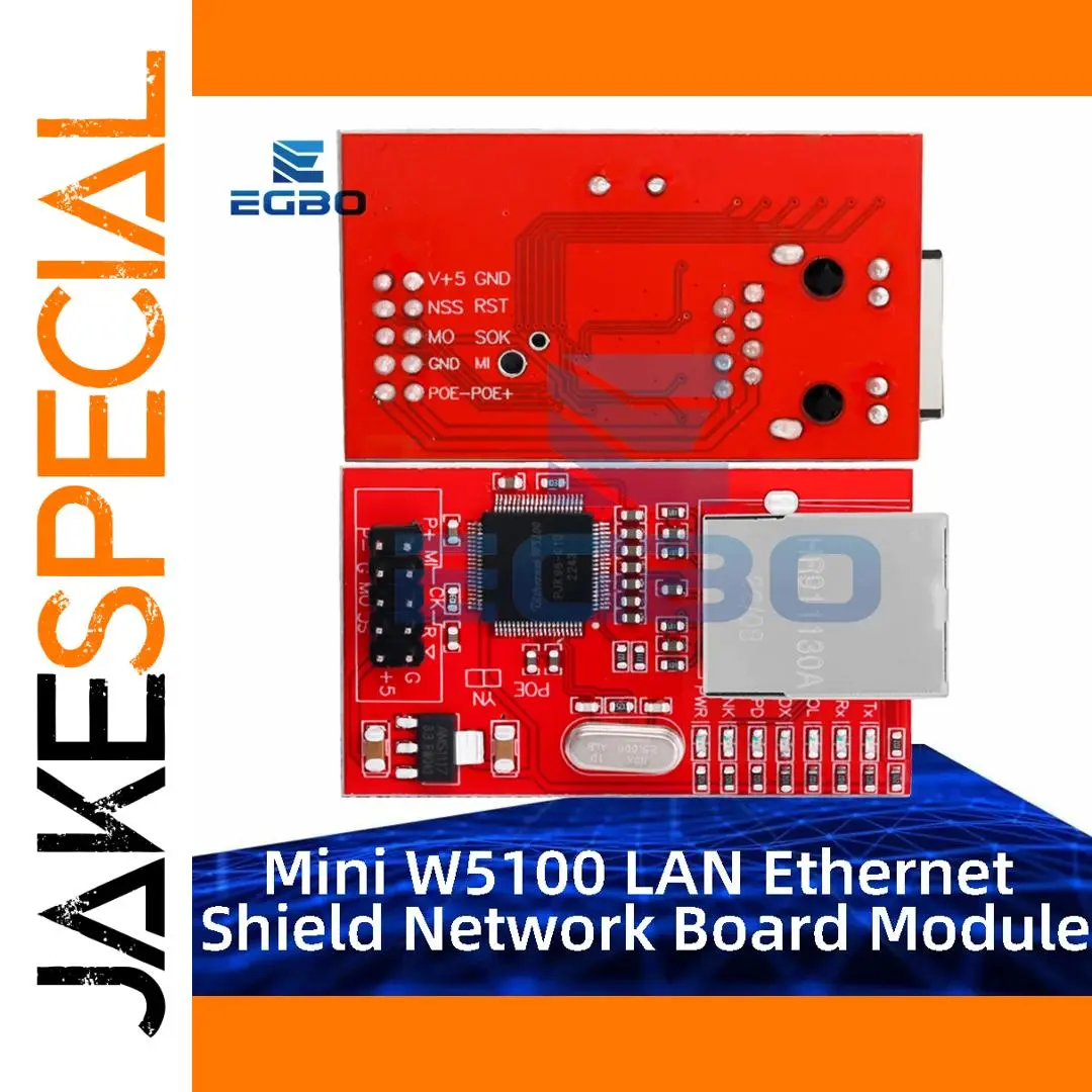 Experience seamless network connectivity with this vibrant red Mini W5100 LAN Ethernet Shield Network Board Module R3 W5100. Designed specifically for Arduino Mega 2560, it offers reliable high-speed Ethernet connections with a sleek, eye-catching appearance. The module features a durable red printed circuit board with a meticulously organized layout that includes a shielded RJ45 port, surface-mount W5100 Ethernet controller, and various pin headers for easy integration. Its compact, modern design combines professionals’ precision with user-friendly functionality, making it an essential component for any network-based project. Whether you're setting up a smart home, IoT device, or network automation system, this shield provides the technical reliability and aesthetic appeal needed to elevate your project.