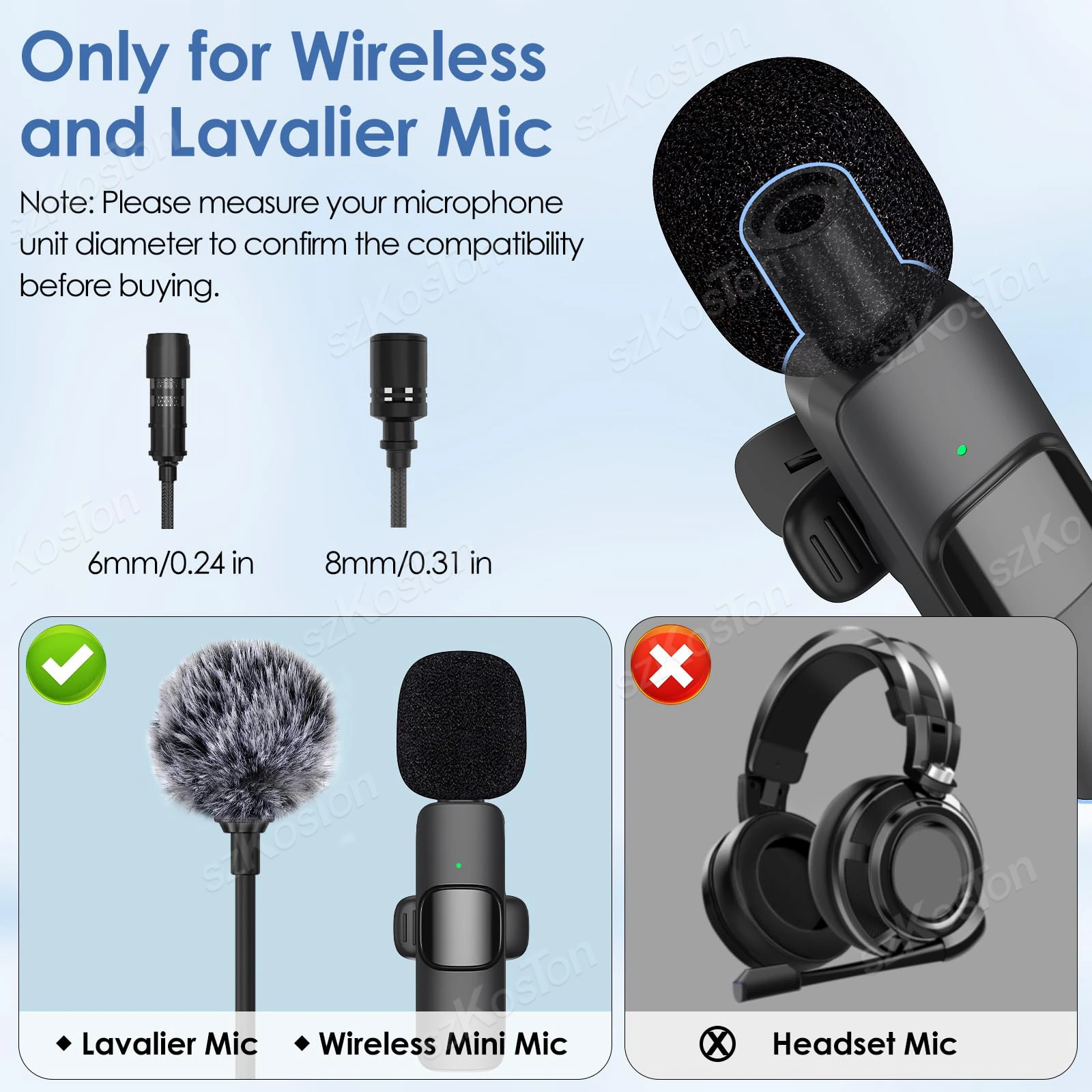 Experience superior audio quality with this Mini Wireless Furry Windscreen and Foam Cover Set for Lavalier Microphones. This carefully designed kit includes nine essential components: two sturdy foam microphone covers, two fluffy furry wind muffs, and two secure mic clips. Crafted from high-density foam sponge and artificial fur, this set offers exceptional noise reduction and durability. Whether you're recording indoors or outdoors, these covers effectively minimize wind and ambient noise, ensuring every word is crystal clear. Cleaning and maintaining hygiene is effortless, keeping your microphone pristine and ready for any occasion, from live broadcasts to stage performances.