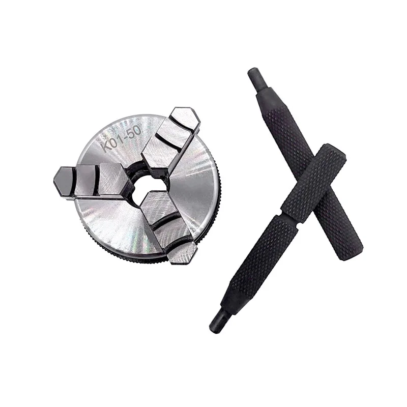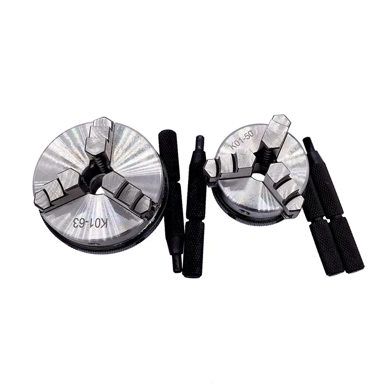 Imagine enhancing your woodworking projects with this expertly designed mini lathe chuck. Crafted with durability in mind, this 3-jaw self-centering collet offers precise gripping for turning and shaping small workpieces. Its sleek, metallic body features a reflective, polished surface that highlights quality and craftsmanship. The textured black adjustment ring provides a tactile grip for easy tightening and loosening, ensuring secure hold during use. The rectangular jaws with beveled edges and angled cuts create a balance of functionality and aesthetic appeal. Compatible with various small woodworking lathes, this manually operated chuck offers both strength and finesse, making your projects more accurate and manageable. Trust in its stability and precision for your next craft or hobby.