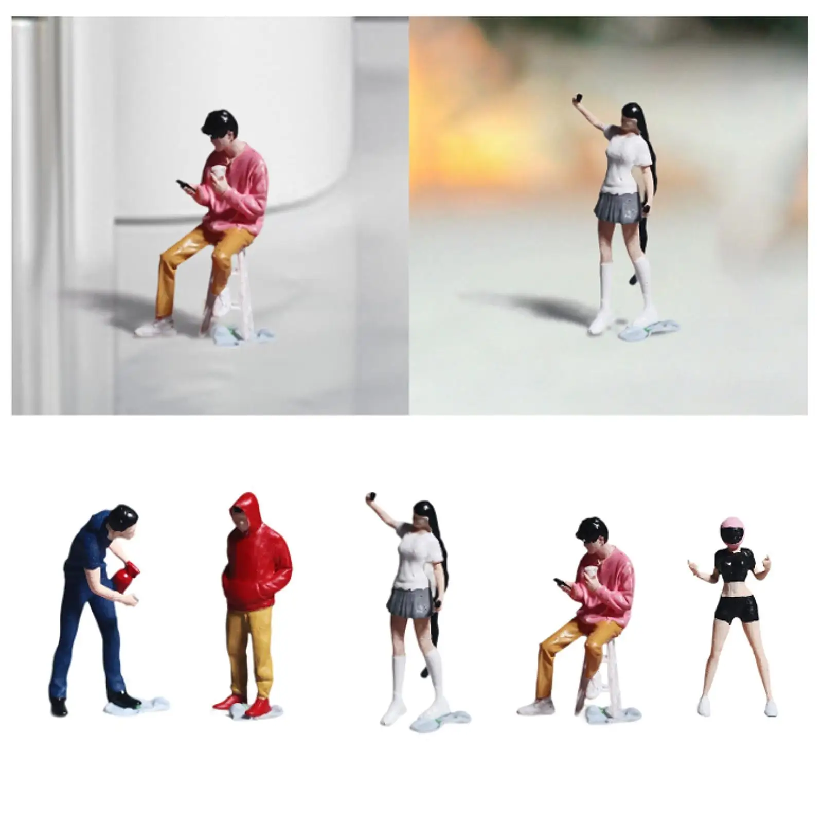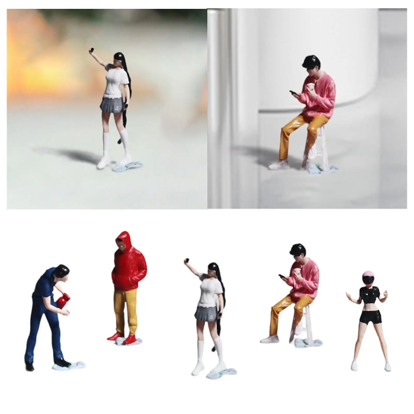 Step into a world of detailed craftsmanship with this stunning 1/64 scale miniature figure set. Crafted from durable resin, each figure stands approximately 2.7 cm (1.06″) tall, perfectly suited for creating hyper-realistic scenes, tabletop dioramas, or photo props. Hand-painted with vibrant colors including deep blue, bright red, soft pink, and elegant black and white, these figurines bring life to any miniature landscape or fairy garden. They feature casual modern poses, such as standing, seated, or expressive gestures, adding personality and movement to your display. Whether you're an enthusiast or collector, these figures will elevate your miniature scenes with their artisanal quality and fine detailing. Invest in a set that combines durability, visual appeal, and versatility.